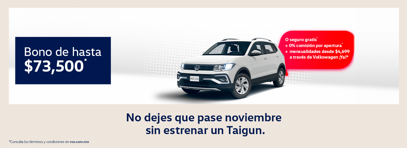Se le informa que, a fin de dar cumplimiento a las finalidades establecidas, apartado 2 del presente Aviso de Privacidad, sus datos personales pueden ser transferidos y tratados dentro y fuera de los Estados Unidos Mexicanos por personas distintas al” Concesionario”. En este sentido y con fundamento en La Ley y su Reglamento, podrán ser transferidos sin necesidad de su consentimiento a: (i) Terceros proveedores de servicios, única y exclusivamente para el cumplimiento de las finalidades establecidas en el apartado 2 del presente Aviso de Privacidad; (ii) A terceros para realizar gestiones de cobranza extrajudicial y judicial en caso de incumplimiento, (iii) Terceros proveedores de servicios para la investigación y aprobación, en su caso, del crédito correspondiente para el cumplimiento de las finalidades establecidas en el apartado 2 del presente Aviso de Privacidad; (iv) A Volkswagen de México, S.A. de C.V., para el establecimiento de las condiciones de garantía, campañas de seguridad (llamada/recall) y actualizaciones técnicas; (v) A Volkswagen Bank, S.A. Institución de Banca Múltiple y Volkswagen Leasing, S.A. C.V., para el cumplimiento de las finalidades para el otorgamiento de créditos y financiamientos por el servicio contratado (vi) Asociación Nacional de Concesionarios del Grupo Volkswagen, A.C. (ANCGVW), Servicios Especiales de Ventas Automotrices, S.A. de C.V. (SEVASA), y Multiservicios Integrales a Distribuidores de Automotores, S.A.P.I de C.V. (MIDA), para el cumplimiento de sus Objetos Sociales en su relación con Asociados y Socios (vii) A las Autoridades competentes en materia de control vehicular; (viii) A empresas de sistema de localización satelital para la instalación de un dispositivo de localización, recuperación y entrega de vehículos robados; (ix) A instituciones financieras, bancarias y crediticias, para la solicitud de otorgamiento de créditos por el servicio contratado por el cliente; (x) A aseguradoras para el otorgamiento de pólizas de seguros por el servicio contratado por el cliente.